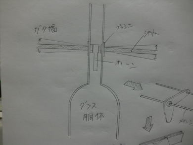 ● このグラス製胴体なんですが、垂直尾翼はグラス製ですがラダーはリブ組ってタイプが遥かに多いので・・・垂直尾翼の後部は開いてるキットが多かったでしょう?・・・。グラスの積層状態が唯一肉眼で見える空間でもある訳だから、右側のイラストの様にクランクホーン自体を改造して組み込むと、ガタを最小限に抑えた機構が実現出来たりします。L型の作動ホーンを上下に延びた菱形ホーンに改造して、上下に延びた作動ホーンの両面を航空ベニヤ等で挟んでやると、ガタが極端に減らせます。重さが増えるじゃないかああああ!って博士さんは、別の機構でも考えてくだされ!・・・。増えるって言っても数グラム・・・。スパン3000mmの機体でも充分許容範囲の構造ですので、作れるモデラー諸氏は試してみましょう。きっと好結果が期待出来ますよ。ネット物知り博士の皆さんが、飛行場でしつこく聞いて来るかもね(笑)・・・。当工房の機体・・・フライングスタビのソアラー全般に内蔵してます。
