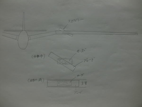 ● 畑違いの模型歴の長い島鉄さんでも作れるスポイラーユニットなんですから、まあ・・・バルサキットを作れるモデラーなら誰でも作れる超お手軽ユニットのスポイラーですよ。リンケージも要りませんし・・・特殊な加工もありません。どんなバルサキットのグライダーにも組み込める確実性は在りますなあ・・・。ただ・・・効きが・・・。急減速掛けれる様なシロモノでは無いですよ・・・。上空飛行中の落差が大きい時に、作動させてみて愛機の挙動を充分確認してから使用しましょう。イラスト画像に記載したガル翼のヴィンテージスケール機に付いてた記憶が有るんですが・・・資料が見つからないのでイラストのみで掲載しました。昭和のF3Aなら・・・誰かが考えそうなんですが、当時の送信機にはサーボの作動幅を自由に変更出来る機能が無いので無理だったかも・・・。コンピ~たあプログラム機能が付く以前のお話ですが・・・。