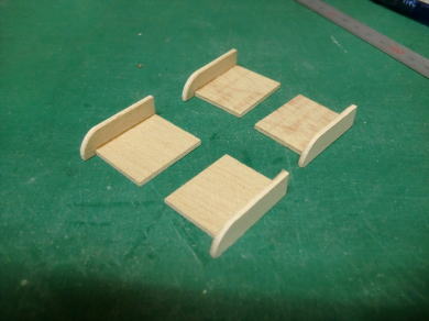 ● ブレーキユニットの床板となるベースを作ります。本来はサーボのハッチとなるキット付属の1,5mmベニヤをベースの床板として使いました。此のベニヤの床板をユニットの固定スペースでビス止めする為のブラケットも作りました。片翼分で八カ所の台座で固定します。意外と面倒臭いんですが私はこういったチマチマ作業には抵抗がありません。楽しく作業出来ましたよ(笑)・・・。