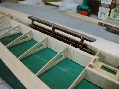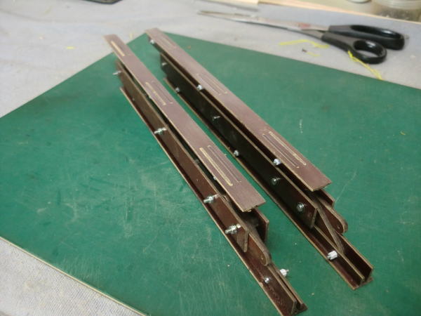 ● 別に強度が大きく掛かってしまう場所でも無いので此れで充分だと思いますけど・・・。まあ・・・ね!単純にシートを繋いだだけならオーバーGが掛かったら割れてしまうかも知れませんが・・・。その為の木目からのクラックを防止する意味での、小口を拘束するリブキャップも着けてる訳ですし・・・。この区間の上面プランクの指示は無いんですが、継げば使えるシート端材が残ってるから使っただけなんですがねえ。私の工作なんて継ぎましたあ~・・・貼りましたあ~は当たり前です。