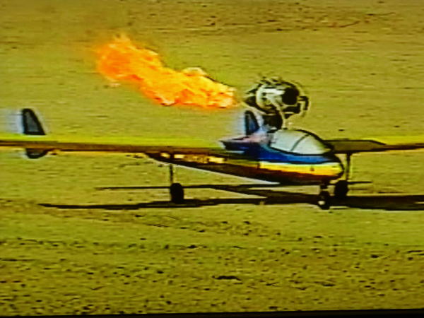 ● ホームページ開設以来・・・時々メールが有るんですが・・・、当工房ではグローエンジン・ガソリンエンジン・ジェットエンジン等の修理や販売は行っていません。画像は今から三十年近く前のジェットタービン・エンジン搭載機です。着陸して減速中なんですが、エグゾーストから炎が噴き出してます。当時はタービンジェットの燃料はプロパンガスの時代・・・。現在のJP-4燃料(精製度は灯油よりも落ちる)が主流に成る以前・・・発売当初はプロパンジェットだったんですなあ・・・。よってグロー系燃料を扱っていた時代のまんま、このプロパンジェットを扱うもんだから・・・咥えタバコでガス燃料注入中に、不注意で漏らしたプロパンガスで顔面火だるまに成る大馬鹿モンのモデラー多数・・・。格納庫の中で咥えタバコでジェットエンジンを分解する様な大馬鹿モンは独りも居なかったが・・・模型世界には大勢居たって事ですなあ(笑)・・・。