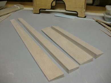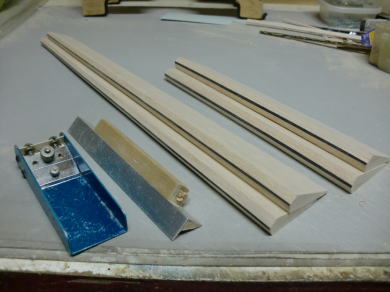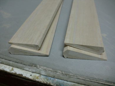 ● フラットエルロン材をテーパー幅のエルロン・エレベータ材に作り替える方法は、(なんちゃってリブ組エルロン)の項に詳しく記載してありますので、ご自分の工作道具で作って下さい。