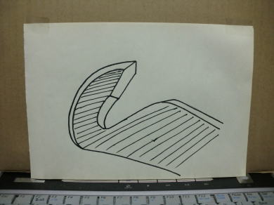 ● 硬化したら固定道具を外して、バルサカンナ等を使って周囲の余分なバルサを削り取り、最後はサンドペーパーで仕上げます。バルサシートを仕上げるのに、番数の高いペーパーを推奨する自作モデラーさんも多いのですが、大きく削りたい場合、例えば嵩は低いけど幅が広い場合は、むしろ粗目のペーパー(番数の低い)で削ってから、仕上げに高い番数のペーパーを使った方が上手く仕上がります。私の場合は#120で粗削り・・・仕上げはスポンジペーパーですけど・・・。仕上げる生地完成の状態にもよるんですが、フィルムを貼るのか・・・シルクを張るのか・・・によっても、生地の状態が変化します。