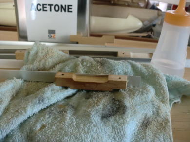 ● このアセトンなんですが、中毒性はシンナーに比べれば低い溶剤なんですが、揮発性はシンナーの上を行きますので火気厳禁となります。けっして咥えタバコでの作業はしないで下さい。匂いがかなり独特で強烈ですので、換気が悪いと頭痛マックス状態ならば・・・必ずゲロ吐きますので、空気の流れの良い所で作業しましょう。画像の様に、ウエスの上で作業した方が良いですよ。