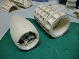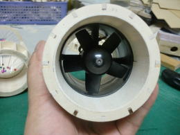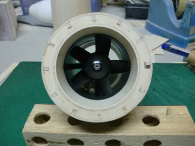 ● 意外とこのインナーダクトの加工というのはシビアです。ポッドの外形も重要なんですが、このインナーダクトが性能の要ですから・・・。ハッキリ言って・・・ジェットエンジンの搭載の方が楽だったりします(笑)・・・。ジェットエンジンは、その本体の中にインナーダクトが既に備わってますから・・・。ただ・・・DFと違って、排気口からの排出ガスは燃焼ガス・・・。軽く700度を越えてます。自宅工房内で試しに廻す・・・即!大火傷と火災に発展します・・・。