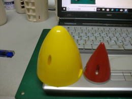 ● 今回のカウルとコーンの部品を切り出して、組立てるまでに使用した刃物は・・・カッターナイフだけです。この材料取りと組立手順ならば、初心者でも根気さえ身に着ければ・・・可能なんですなあ・・・。福さんでも出来ますよ。今のハイテク機器に例えるなら・・・3D成型機かな?・・・。うにうにと溶剤を盛りながら作ってくれるあの成型機ですがね・・・。輪切りの再構築とも言いますね。
