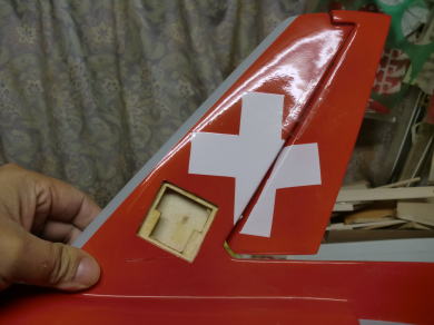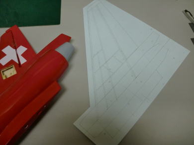 ● 本機オリジナルの垂直尾翼よりも15%ほど面積を増やし・・・高くしました。このエンジンポッドも細くしたので、結果的に使えないエンジンポッドの空気抵抗が減ります。よって!垂直尾翼の面積自体が更に増えますので直進性能は向上するでしょう。更に・・・グラス製モノコックの状態から、スチレン構造体のバルサプランク仕様に変更に成りますので、グラス製垂直尾翼の数分の一の重さに軽量化されるでしょう。