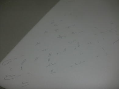 ● まずは垂直尾翼の作図です。この作図面なんですが、裏打としてケント紙を貼ってあるので熱さがmm程有り・・・形紙としても使えます。この形紙をスチレン材にトレースすると、画像の様な複雑な座標が描かれます。