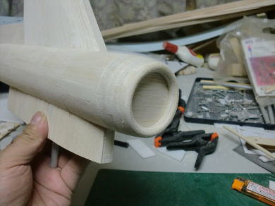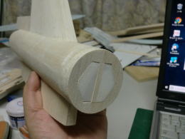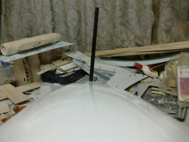 ● 苦労して自作した垂直尾翼を胴体に差し込んだら・・・やっぱり傾くので・・・一応胴体にカンザシを差し込んだら、胴体側のパイプも傾いとりました(笑)・・・。もう!笑うしかないですよ!。福さんも一緒に笑って下さい!。笑わないと・・・気が滅入る・・・。