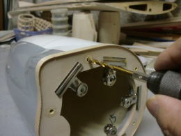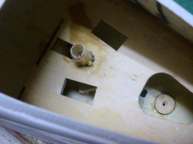 ● 福さんには申し訳ないんですが・・・此処も大手術に成ります。この傾いたパイプを取り去って新たにパイプを入れ直しますので、このエレベータサーボの取り付け孔もぶち抜きます・・・。まあ・・・新たに作る事には成るんですが、もっと困った事に・・・。水平尾翼はアルミパイプをカンザシに、この胴体の中にこのカンザシの台座を作るんですが、多分画像の中には専用ブラケットが有った様な・・・でも本機の部品には付属していません。もう一度確認しようにも・・・(MD-11)の画像は、全てページから消滅しています。多分誰かが連絡して、私のページを見て・・・此れ以上被害が及ぶ前にと証拠隠滅したかも知れませんなあ・・・。よって再び手探り作業が続きます。作業延長の許可を下さい!。