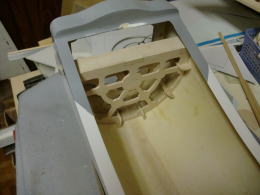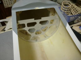 ● 結局の所・・・新たに台座を作る事には成ったんですが、最初からバーを固定出来るブラケットを中華の職人が、グラス胴体を組む時に一緒にポリ樹脂で固めておいてくれたら、こんな大袈裟な台座を組む必要は無いんです・・・。この胴体構造では、バー自体を固定出来る方法が無いので、胴体内部全体での接着面積を増やして台座を固定しなければ、5キロの荷重には耐えられませんでした・・・。尚且つ・・・この台座自体が重く成っては意味が無く・・・肉抜き孔を多数設けないと、後部胴体との結合の為のプラスドライバーも刺せなくなります。よって!主翼固定台座本体を荷重に耐えられる様に・・・尚且つ!後部胴体の合体を容易にする為にこんな大袈裟な構造の追加胴枠を組み込む事に成りました。申しわけありません・・・。更なる作業延長をお願いします。最悪・・・年を越える可能性も出て来ました。あまりにも修復箇所が多過ぎます。38親分本人が気付いていないとするならば・・・今後福さんと同じ様な犠牲者がどんどん増える事に成るでしょう・・・。カスタム屋が手こずってるんですから・・・一般のモデラ―には、完全完成自体も難しいと思います。詳しい記事内容が必要ならば、キット製作の記事の方をご覧ください。(Part-9に続く)