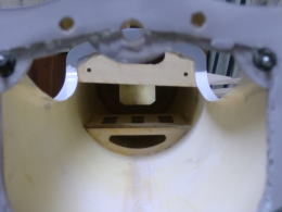 ● 本機は固定脚ユニットですので、主翼の強度保持の為・・・脚の収納部分を塞ぎました。此れだけの大穴にも関わらず、何の補強もしてない構造では、たとえリトラクトユニットを搭載しても、38親分の説明に有った重量が5キロを超える・・・と言った文言なら耐えられません。