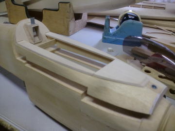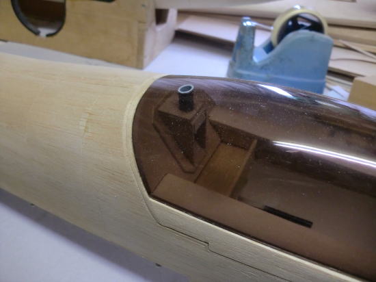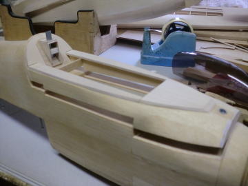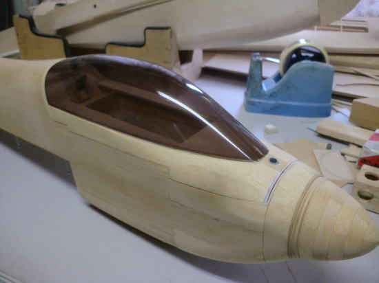 ● 一応、キャノピーの加工と取り付け構造は終わりました。キャノピーが有ると図面に描いた胴体のライン通りになりました。細かい調整はまだまだ先の事・・・。コクピットの中はもう少し弄るつもりです。本機の胴体は絹張塗装仕上げ・もしくはマイクログラスの塗布からの塗装にする為、コクピット内部とキャノピーの加工・・・それと取り付け固定の設定・・・其れが終われば塗装する為の準備へと移行します。