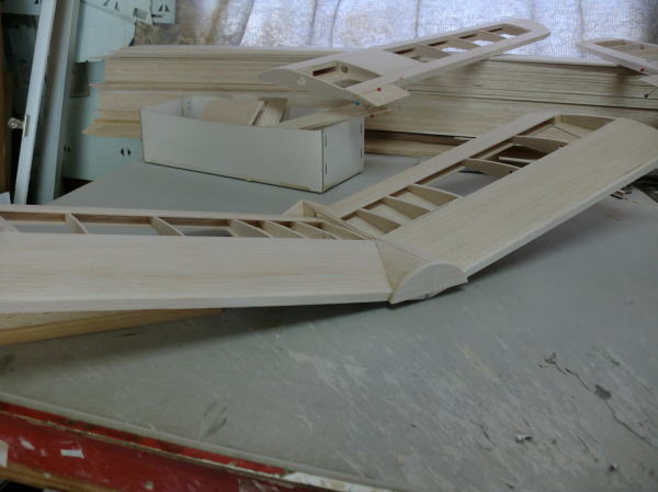 ● 画像中のクリップで挟んでいる部分は、発送する際分解が必要なので接着してありません。接着する際は記事中で述べた様に翼型同士のベタ貼りです。ただし・・・其れだけでは強度不足ですので、継ぎ目の両側は幅広のリブキャップを使っていますが、このキャップ面に沿って広範囲にマイクログラスを塗布する補強を行います。(Part-3に続く)