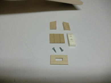 ● スチレン製のキールフレーム材を切り取ります。キールフレームは組み立てる前に大きく肉抜きしているので、カッターナイフを軽く添えるだけで簡単に切れます。後は軽くサンドホルダーで仕上げます。この後縁側のスチレン製の胴枠には大きな荷重が掛かるので、主翼のビス止め台座を組み込んで補強します。バルサとベニヤで構成された胴体内部の頑丈な構造体にビス止めの台座を組み込むのではなく、ひ弱な構造体にその構造体を維持出来る強度が有れば良いので、画像のビス止め台座はオールバルサとPVC樹脂で良いのです。よって馬鹿みたいな重さの台座には成りません。