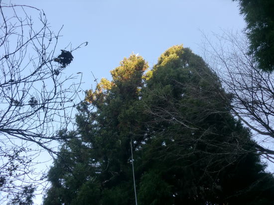 ● 此方は競技開始前、午前中の自由フライト中に起きた惨事・・・。ヴァージルさんのアルバトロス号が軽快な滑空飛行をしてたと思ったら、いきなりの急降下・・・。そして急上昇・・・。どうもメカトラみたい・・・。トムさん曰くバッテリーのトラブルと判断されたようです。最後は急降下で杉林に消えたんですが、画像に見える杉の木の先端に不時着です。回収用の如意棒は10メートルなのに、全然届きません。お友達が15メートルの如意棒を持ってるとか・・・バージルさんは、大会を棄権して大阪のお友達の家まで如意棒を借りに行きました。しかし・・・15メートルでも届かず・・・結局、自然落下を待ち、数日後に回収に行くと見事に落下しており無事に回収できた模様。