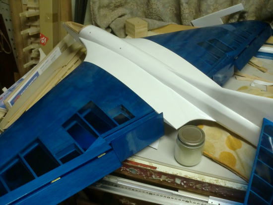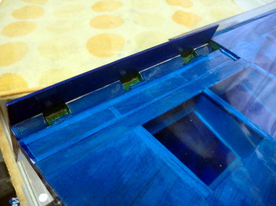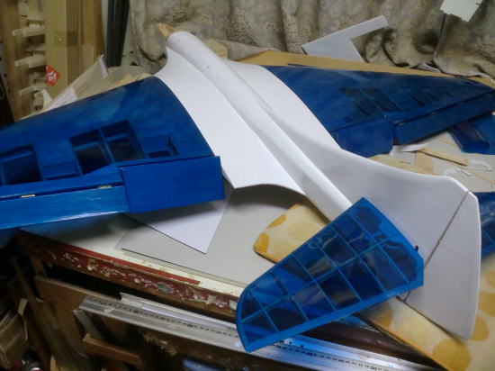 ● トムさん御一行宿泊の翌日・・・出発前のトムさんから一言・・・。「薄い色のブルースモークのシートの在庫は、切れてもう無いから・・・。」の言葉に、深く考えずに安易に「了解!。」って言ってしまった後の状況・・・。丸一日かけて作った、山本オリジナル機に近い構造のキャノピー枠・・・。中が良く見える様に薄いブルースモークのキャノピーを取り付ける前提でつくったんですが・・・、色を吹き付けながら・・・思い出してしまった・・・。ああ、この色ってもう無かったんだと・・・。よって、別の色のスモークカラーに成る可能性有り。成形されたキャノピーを切り抜いて取り付けるのはトムさんだから、仕上がりはトムさん任せに成ります。ああ、もっとしっかり頭の中に記憶させるべきだったなあ・・・と深く反省。