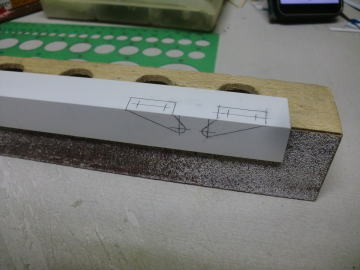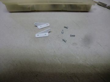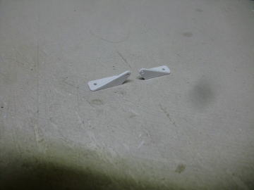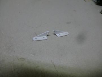 ● 今回、本機製作においてオーナーさんがOK模型の社長なので、出来れば会社の製品を組み込むのが筋なんですが、画像の様なサイズと形状が無いので自作しました。材料はホームセンターでも安価で購入出来るナイロン素材のアングル材です。厚さが1,5mm程・・・。加工はちと面倒臭いですが、強度も充分にあるので、このサイズならラダーホーンとして立派に使う事が出来ます。