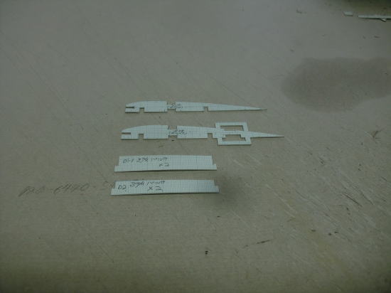 ● 右側画像は(W5)~(W8)です。メインスパー後方の切り欠きはスポイラー取り付け部です。一番手前の(W5A)は、(W4)リブとの中間辺りに取り付けます。ザノニアの原図では(W4)リブから(W8)リブまでがスポイラーの取り付け位置の指定です。セオリー通りなら・・・このスポイラー板の範囲は水平尾翼の翼端側にモロに被るので多分・・・スポイラー全開時にエレベータの効きが悪く成りそうな気配・・・。其処で補助リブを追加して被りを少し外す目的で、キット仕様よりも少し短くしました。ただ・・・スポイラーの効きが少々悪く成る可能性も在りますので、長さを詰めた分の面積不足を巾で補う為に5mmほど広げました。今回のスポイラーの駆動方法とリンケージも新しいアイデアを試すつもりです。