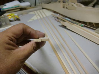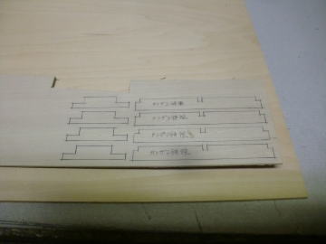 ● 其れを防ぐ意味での画像の加工手順を使っています。此れも経験値・・・。画像のリブ絶対重要な部分が、正方形に抜いたカンザシパイプの徹前後の正方形の角孔です。其れに付随する細い孔はパイプ部分をサポートする補助部材を通し、パイプと接着固定するんですが、まあ・・・普通に通せれば良いだけなので、然程綿密なる精度が必要な箇所ではありません。暫くは部材の切り出し加工記事が続きます。気長に閲覧して下さい。確実に前には進んでますから・・・。