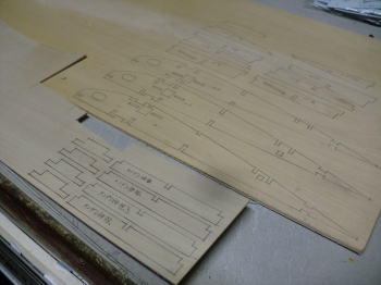 ● まあ・・・大手のレーザーキットでも此処までのぎゅうぎゅう詰めの材料取りはしませんなあ・・・。何故ならプログラムの複雑さと、シート材の弱点も見えて来るかもなあ・・・。このシートは完全に木目が真っ直ぐに通った板目のシートなんですが、材料によっては湾曲したバルサの丸太から製材すると、板目でも柾目でも木目がシート内で湾曲するんですよねえ・・・。湾曲したシートから型抜きすると、外した傍から細い棒状の部材は湾曲してしまうんですなあ・・・。昨今の木村バルサでも苦労してるみたいですよ。基本的に製材屋さんは、エクアドル産のバルサの場合、大割の角材で納入されるんですが、其れがコンテナ一杯分有るんですなあ・・・。其れを一本ずつ検品して何処に使うのか・・・シートにするのか厚手のブロック材にするのか、其れは専門職の英知無くして図り知れませんなあ・・・。