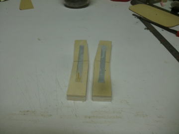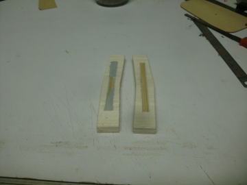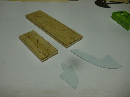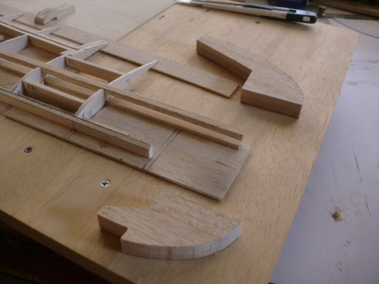 ● 切り出せば即取り付け可能・・・ってのはレーザー加工部品の世界のお話・・・。糸鋸盤を使った手切りの部材は、即取り付け可能とは成りません・・・。実は本機のメインスパー上部はまだ接着されておりません。この画像ではまだ説明できませんが、とにかく内翼と外翼の結合ジョイントを作らないと上部のメインスパー材は取り付けられません。よって先に翼端ブロック材を作りました。前後に分ける造りは今まで通り・・・。ただ今回は内蔵する構造なんですが、多分・・・最強の翼端材に成ろうかと・・・。