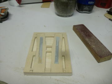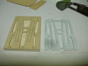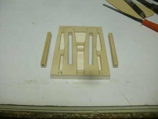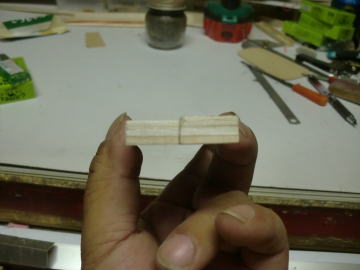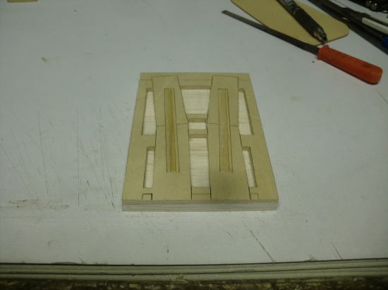 ● 切り出したカンザシは画像の様に左右で厚みが違います。切り出してから厚みを調整するのはかなり難しく・・・左右のカンザシの厚みを均一にするには骨が要ります。よって一体型で作図して、左右合体の状態で厚みをテーパー状に削り出します。その後全てを組み込んでから糸鋸盤で加工してカンザシ状態にしました。面倒臭い工作にはなるんですが、模型製作を長く続けると、場数を踏めば踏むほど何とか手抜き工作を考えてしまいます。悪い結果に成る手抜き工作では無いので、今後の模型製作でも使う手抜き手順とも言えます。