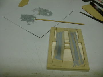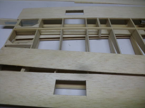 ● 今回のカンザシなんですが、ちょこっと脆い3mmベニヤを使ったので、肉厚確保に3mmのハードバルサを積層しています。しかし・・・メインスパーの幅が広いので、こういった造りのカンザシなんですが、裏打ちのバルサシートだけでは強度不足も考えられるので、何時もの補助カンザシを組んで埋め込んでます。称してマイクロサージャリー術式とでも言っときましょうかね。地元愛野記念病院のゴッドハンドと呼ばれる外科の権威ドクターしか出来ない術式・・・まあ、その応用ですよ。素人考えの・・・。