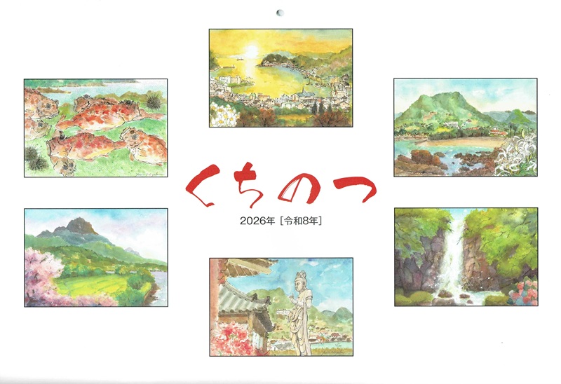 下の画像は口之津カレンダー2026の表紙です、今回は口之津在住の画家 三宅康夫氏の水彩画です