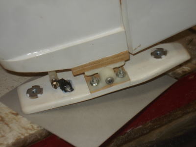 ● 垂直尾翼直下の胴体下面にハッチを設けて一次リンクの台座を組み込んであります。なるべく直線配置のリンケージになる様にする事がT型尾翼のリンケージのガタを防ぐ基本です。