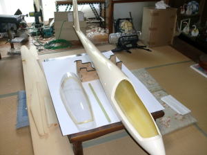✈ 当工房の製作記事の殆どが、生地完成状態で完了しています。何故か?・・・というご質問も多く聞かれるんですが、当ページの見出しにも記載している通り、「作れるモデラーの為の製作記事」ですので、此処から先の被覆とメカ積みに関してはモデラーは誰でも出来ますので割愛させてもらっています。全長が3メートル近い胴体を塗装する為には、倍以上の奥行きを有する塗装室が必要に成ります。やっと車庫の移設も完了しましたので、当工房の生地完成状態の機体は塗装仕上げが可能に成りました。今後の製作記事には、絹張り・紙張りウレタン塗装仕上げの塗装工程の記事も増えるでしょう。