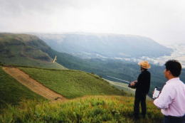 海外のメンバーに言わせると大観峰は斜度がゆるいそうです。東斜面は切り立った崖なのですが、その直前に陣取り操縦する事ができません。直前に立てない大観峰は、テイクオフポイントが斜度45度しかありません。その先のエリアで視界が切れる死角があると、機体のコントロールができなくなります。メンバーに不評なので大観峰は使用していません。