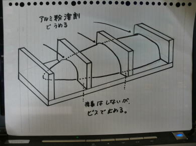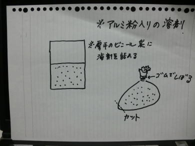 è£åŒ·ããæååã®ã¡ã¹åã«ãã¢ã«ãã®ç²ãæ··ã蟌ãã ãšããã·æº¶å€ãæµã蟌ã¿ç¡¬åãããŸãã