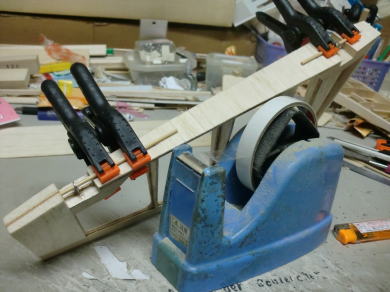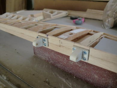 ● 今回ご紹介したヒンジブラケットの製作記事なんですが、本機の尾翼の構造体が中芯のベニヤの両面に部材を貼り込んで形成する工作方法だったので、センターヒンジの一本溝やピンヒンジの丸穴を容易に開けられる材質では在りませんので、こういうブラケットを作成しました。大型グライダーのキットには・・・尾翼の動翼の後縁と前縁の材質を加工し易いバルサ材で構成し、加工し易いヒンジラインを形成する方法を指示している場合もあります。こういった場合・・・ブラケットを作ってビス止めしても材質自体が柔らかいので強度がありません。本機の場合は前縁も後縁もベニヤで形成していたので、ブラケットの固定をタッピングの皿ビスが使えました。よって、私的改造を行う前に・・・キットの場合は指示を優先して下さいね。改造する場合は、その責任度合いが販売メーカーから個人に移ります。私的改造とは・・・事故った場合の過失を自分で全て被る必要があります!。くれぐれも勘違い為さりませぬ様・・・。