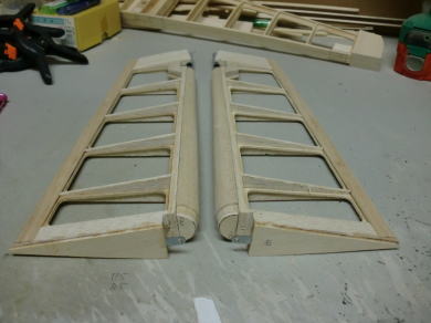 ● 模型飛行機の場合は、動きを優先するので・・・ヒンジラインの段差なんてあまり気にしないんですが、実機では当たり前の装備として、このヒンジラインの気流の乱れにも完全対処します。よって動翼側の前縁は半円状に・・・固定尾翼側は其れをカバーする整流のフィレットを付けます。板ヒンジに設けられたピンの中心は、動翼前縁の半円の中心が同じラインを通ります。よって動翼の前縁は回転する動きとなります。