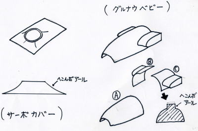 ● 恨み節の主さんは多分!自分で実際に試して、その結果として私の成型器を紹介したのでは無い様ですね。ネット物知り博士らしく空想製作・空想実施・空想早合点・・・等々、「サーボカバーやグルナウベビーのキャノピーだって出来ますよ!。」って出来る訳無いやんかあ〜!。シートを熱で弛ませて、木型に載せて下方向に引っ張り木型の底に巻き込むって言ってるのに、シートを木型に吸い付けないと表現出来ない加工まで、どう空想を飛躍させればこういう発想に行き着くんだろう?と不思議な気持ちになりました。又聞きのマニアさんは真空成型の原理は解かっているんですが、何度試しても窓枠付きのキャノピーが表現出来なくて迷っていたそうです。いわゆる闇夜の黒猫探しの状態です。