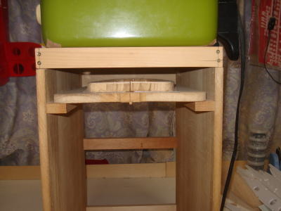 ● 左の画像の様に収納する時は全部まとめられる様に、全体全備品のサイズも決めてあります。電気ストーブには転倒した時の発火防止の一つとして、ストーブの脚の部分にリミットスイッチが付いています。画像の様な姿勢で使用しますので一時的にこのスイッチを殺す必要があります。私の場合は3mm程度のベニヤ板で蓋を作り、ガムテープを使ってスイッチONの状態で固定出来る様にしました。もし・・・ご家庭の電気ストーブを使われる時は必ず奥様の了解を取りましょう。スイッチ殺しの使いっぱ・・・では奥様から殺されますよ。気をつけましょう・・・。