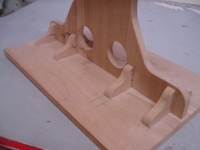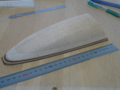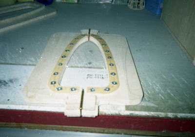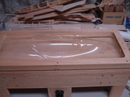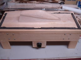 ● 木型に薄く筋が見えていますが、一番上のラインが機体に取り付ける実寸のキャノピーラインです。その下の白っぽいバルサは切り代の部分です。真空成型とは違いますので切り代を大きく採った方が成型し易くなります。一番下のベニヤの積層部分は木型の補強用となります。この木型の基本的な構造は真空成型用の組み方です。本器・ひとりdeギュ〜は真空成型用のキャノピーがそのまま使える成型器です。確実に丈夫に作れば作るほど安全に作業が出来ますが・・・、手を抜けば抜くほど危険な成型器に成りますのでご注意ください。