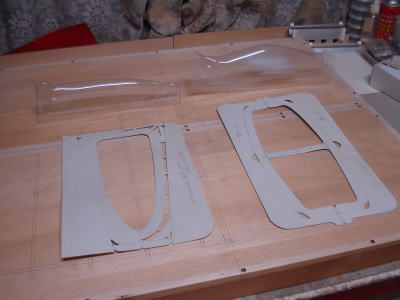 ● 画像はロックウェルカナード機の型押し枠です。隣にあるのは必要寸法にカットされたポリカーボネイトのシートです。シート自体は定尺購入しても高価な商品ではありませんが、初めて作業するマニアが一発で成功出来るほど・・・、簡単に出来る成型でもありませんので、必要寸法ギリギリでカットして定尺寸法のシートから採れる枚数を稼ぎます。シートの両面には色付きの防護フィルムが一面と無色透明なフィルムが一面と貼られていますので、両面とも剥がしてください。この時、静電気が強烈に発生しますのでホコリは当たり前の様に付着してきます。気になるマニアは液体状の静電防止剤を布切れに含ませて軽く塗布して下さい。