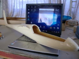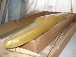 ● こういった胴体内部のカンザシ固定があまりにも難しかったので、完全完成機の時代に成るとワンピースの主翼を胴体の上面に固定する肩持ち翼(ショルダーウィング)タイプが流行った訳ですが・・・。昭和の遺物には・・・このワンピース翼のショルダータイプは、バルサキットに多く用いられ・・・初心者用の機体か、玄人向けのスロープスタントグライダーに多く見られました。此の遺物に見られるスケールタイプの機体なんですが、バルサで胴体を構成すると・・・女性的な丸みを帯びた細身の胴体を表現するには、厚手のバルサを多用しないと表現が難しく・・・厚手のバルサの為に内部補強の堅木(ベニヤ等)で補強すると、メカ搭載の為の内部の容積が限定されたメカしか積めなくなりました・・・。よってスーパーモノコックという内部構造で強度を上げる胴体から、ガラス繊維を積層して、不要な胴枠やストリング材を極力省略する応力外皮構造の胴体が普及する様になりました。