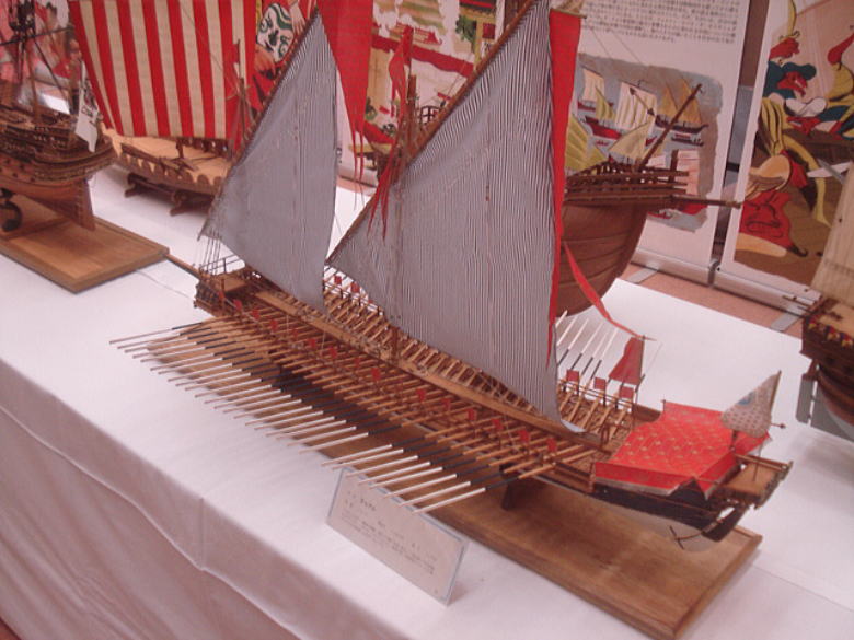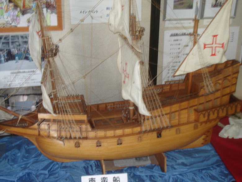 ● この資料館に展示してある「南蛮船」の模型は100万円で製作依頼されたそうです。造りの細やかさと仕上がりの美しさ・・・高級品の名に相応しい出来栄えだと思います。ああ〜ラジコン装置積んで浮かべてみたいなあ〜・・・。