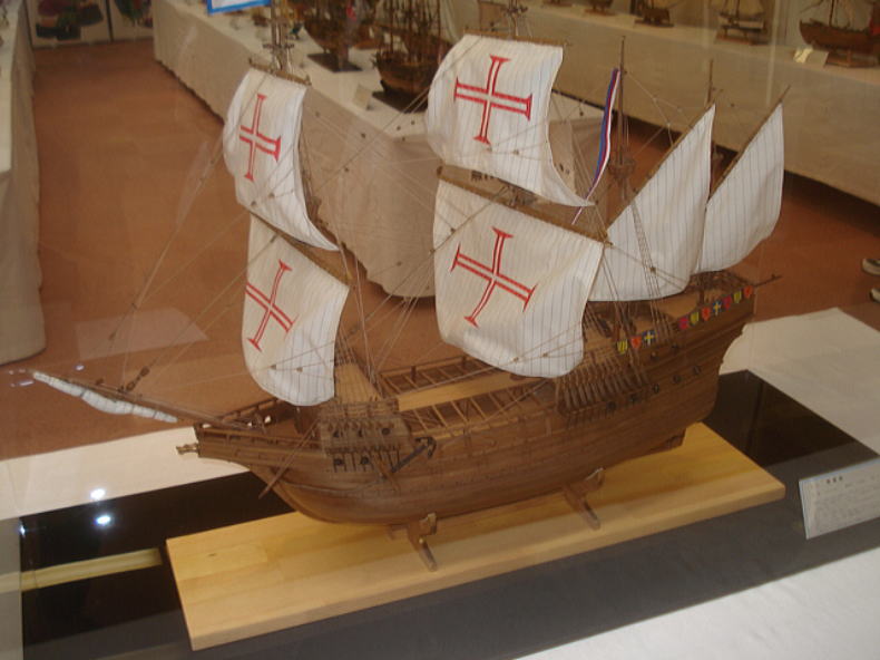 ● 我が町は「南蛮船渡来の町」として知られています。唐人町という地区には南蛮船の船着場の跡の記念碑が建っていたんですが、石垣で囲まれた船着場っぽい雰囲気は残っていましたが・・・、周囲は全て田んぼと畑でした。時代の流れに沿って・・・、我が町も当時から埋め立てが行われていたという事実を垣間見た想いです。帆船としての本船は実に均整の取れたフォルムをしています。多分・・・意図的に頑丈に作らなくても理に叶った構造を持ったスタイルですので、船内の容量も大きい安定した船舶の一つだと思いました。機会があったら作ってみたい船です。スロープグライダーに?・・・成る訳無いですよ。宇宙は航行出来るだろうけど・・・。光子帆船スターライト号ってかあ?。古いですねええええ。