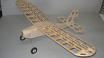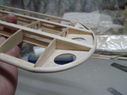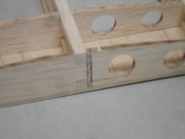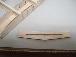 ● 尾翼の厚み3mmに対して星型パイプは直径3,5mmですので、両面に僅かながらの出っ張りが出てしまいます。このパイプの接着は瞬間接着剤高粘度タイプかエポキシを使う限りテンションを掛けても外れてきませんので、どちらかの接着剤を使う様にしてください。完全硬化したら両面に均等にヤスリを掛けパイプ面がバルサ面とツライチになる様に加工してください。垂直尾翼と水平尾翼の後縁は同じラインになる様に溝を調整してください。