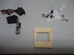 ● セット付属のベニヤ製のサーボマウントに使用するサーボのサイズに合わせて加工を施します。実際にビス止めして下穴を開ける状態までを行って下さい。