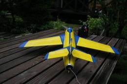 ● ライセンス習得済後のテスト機(4セル:Z-3025ブラシレス)主材バルサ・主翼二分割オリジナル構造