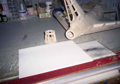 ● 5mmのスチレンペーパーを例にとればシートの表面は熱を加えて急速冷凍して固めてあるので、そのまま木工ボンドを塗っても確実な接着強度には持っていけません。スチレンペーパーの内部は普通の発砲スチロールですので、接着面を充分に荒らしてやると普通に木工ボンドが使用できます。「何馬鹿な事言ってるんですか〜っ!。木工ボンドは水で薄められる水性ですよ!障子紙貼るんじゃないんだから〜!スチロールがくっつくハズ無いじゃないですか〜っ!。」とネットの物知り博士に飛行場で怒られてしまったんですが・・・、木工の白ボンドは水で希釈出来るんですが列記としたビニール系ボンドです。スチロールとは親戚同士ですので木工ボンドとの相性は抜群に良いと思います。ただし!、船舶模型には多用しない方が良いと思います。完全硬化した木工ボンドを水温摂氏70度以上のお湯に浸すと溶けてしまいます。長時間の水中での使用は常温でも溶けてしまう様です。瞬間接着剤もスチレンシートの表面の硬い部分なら溶ける前に硬化して固まる方が早いので安心して使えます。裏ワザとしては接着後に促進剤を吹き付けてやると、しっかり押さえていなくても勝手に固まってくれますよ。この方法で空野氏の機体は全て複製が可能なのです。注意点としては形紙は正確に作った方が後の工作工程が楽ですし自信を持って作業が進められますので、皮算用がし易くなります。まずは作り倒してみてください。卓上の推論で解かった振りだけで講釈していたら・・・、突っ込まれた時確実な応対が出来ませんよ。空野さんの機体構造の知ったかぶりした物知り博士・・・、大御所に突っ込まれて泣きそうになりました。「○○さんのページにそう書いてあったんですよ〜っ!。」って、お前の自論じゃないのかよ〜っ!って大御所さん達に囲まれて怒られていました。可愛そうに・・・合掌・・・。