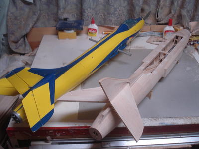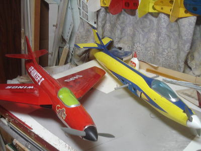 ● 新旧のハンターです。将来的には右のオリジナルハンターの完全復刻版のフォルムで電動化する予定です。多分・・・6セル搭載でしょう。主翼は電動型と同じく二分割になります。早い話が・・・実機と同じ分解方法だと言う事です。