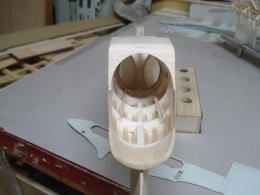 ● モーターマウントの基本構造は私の古巣である築城基地で整備していたファントムのノーズ・レーダードームの内部構造を参考にしてみました。ビームマウント型のモーターの小刻みな振動に対処出来る様に、360度同じ強度を持ったこの構造にしました。このベニヤフレームに直接1,5mmのバルサを二層で貼り込み強度アップを狙っています。この電動ホーカーハンターは別枠で製作記事を書きますのでその時詳しい解説をします。同じ構造でラトルスネイク製の1/16ムスタングにもモーター先入れを実施してみました。佐賀の大御所さん・・・無茶言いますわ・・・。