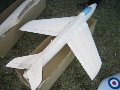 ● ホーカーハンターの内部構造と詳細の説明です。本機は空野さん同様のバルサとベニヤで構成された機体なんですが、ライセンスを貰う条件の一つが私のオリジナル構造にする事でした。当初は一体型構造の予定だったんですが、(ラジコン飛行機タダ貰い専門の恐喝グループ)にネットで嫌がらせを受け・・・とばっちりで母が病院送り・・・集中治療室から出られず母の傍を離れられない状態が暫く続いたので・・・、仕様変更!主翼分割構造を追加してオーナー氏に発送という形に成りました。