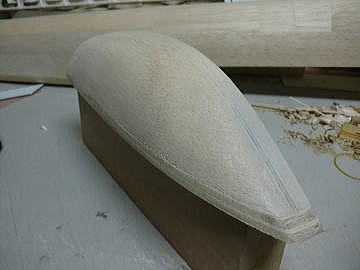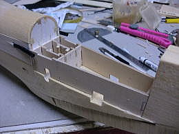 ● 一発で奇麗な木型が正確に削れるって世界でも無いんですよ。コクピットに何度も載せて削り具合を確かめて、最終的に正式な真空成型用の木型に仕上げます。でも・・・プロさんはこんな邪道は使いません。自分のブログでプロっぽい所を見せるなら・・・(kinnsann)みたいな木型の一刀彫をやらなきゃねえ・・・。逆アールのゲージを使って何度も調整して作るのがプロっすよ!・・・。私のは初心者用・・・。まずは目の前の一機分だから、此れでも良いんですなあ・・・。